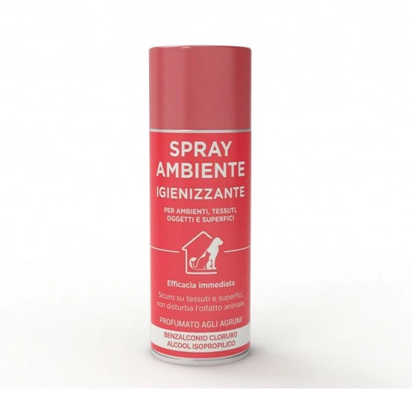 Soluzione liquida in forma spray pronta all’uso per l’igienizzazione delle superfici, di tutti gli oggetti, e degli ambienti non solo quelli a contatto con gli animali. Contiene una soluzione di alcool isopropilico e benzalconio cloruro con azione igienizzante immediata e prolungata nel tempo, lascia un gradevolo profumo agrumato. Non necessita di riasciaquo.