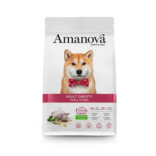 Amanova Adult Obesity Delight Tacchino è un mangime ipoallergenico a basso contenuto di grassi a base di tacchino fresco come unica fonte animale, una deliziosa carne ricca di proteine, povera di grassi e colesterolo.