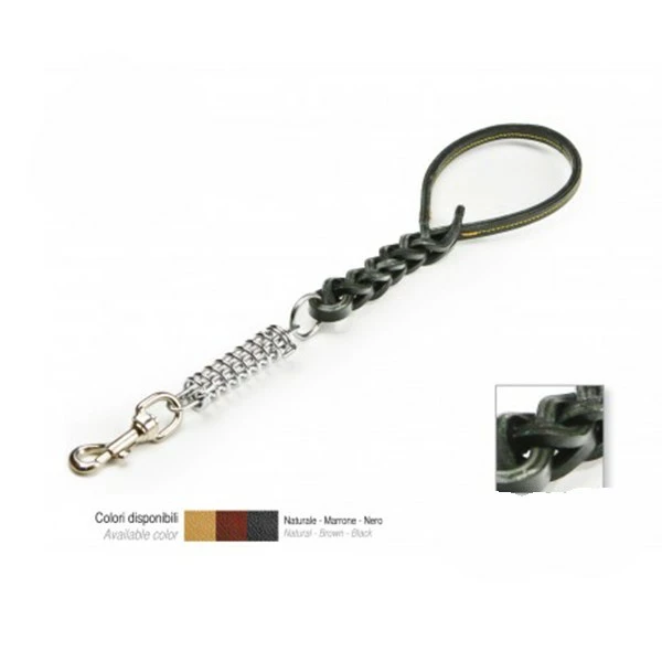 Guinzaglio per cani a tripla treccia con moschettone e molla; perfetto per qualsiasi condizione meteo, con pratico passante per mano. Questo bellissimo guinzaglio in pelle è realizzato in cuoio intrecciato super resistente. Il passante per la mano garantisce un’ottima aderenza anche in caso di cattivo tempo e la striscia in pelle rimane morbida ed elastica. Potrete così usufruire di un accessorio di ottima qualità per tutte le vostre passeggiate. L’articolo coniuga l’antica manualità artigiana, la tecnologia moderna e materiali di ottima qualità. Realizzato con i migliori pellami toscani. E’ un prodotto della linea Eurocuoio by Nuova Cuoio. E’ un prodotto Made in Italy.