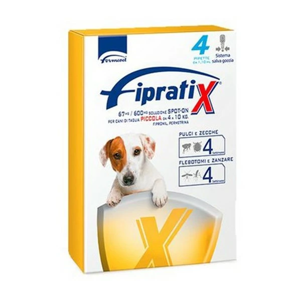 L’antiparassitario per cani Fipratix soluzione spot-on, a base di Fipronil e Permetrina, è indicato per cani di taglia molto piccola – Da utilizzare contro le infestazioni da pulci e/o zecche e quando è necessaria un’attività repellente (anti-puntura) contro i flebotomi e/o zanzare. Non utilizzare su conigli e gatti.