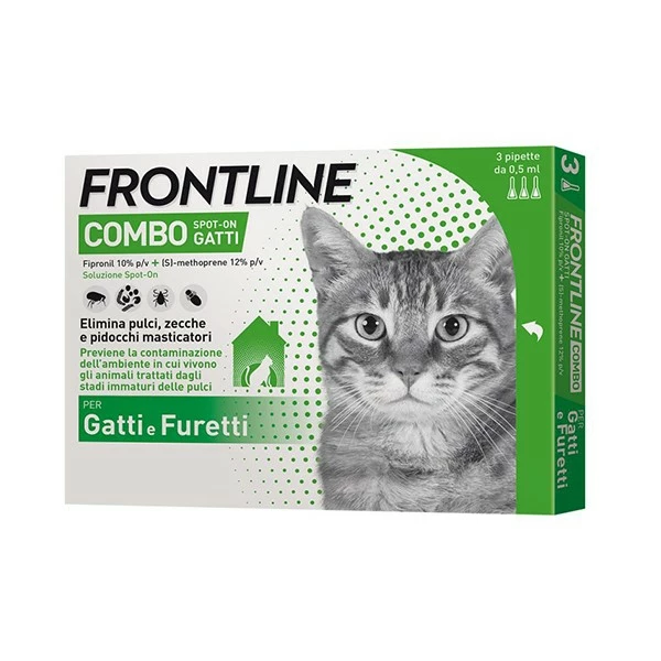 Attivo su zecche, pidocchi, pulci adulte, uova e larve di pulci. Impedisce la comparsa di nuovi parassiti. Elimina i pidocchi masticatori. Combina l’azione di FIPRONIL, sostanza insetticida ad azione rapida e (S)-METHOPRENE, un regolatore di crescita degli insetti (IGR), proteggendo il gatto e l’ambiente in cui vive. Per arrivare alla totale scomparsa del problema ambientale, possono essere necessari più trattamenti con ogni 4 settimane. L’attività anti zecche del prodotto entra in funzione entro il tempo massimo di 48 ore dall’infestazione dell’animale.