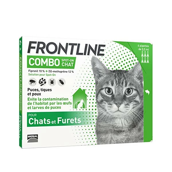 INSETTICIDA ED ACARICIDA. Attivo su zecche, pidocchi, pulci adulte, uova e larve di pulci; impedisce la comparsa di nuovi parassiti; elimina i pidocchi PRINCIPI ATTIVI. Combina l’azione di fipronil, sostanza insetticida ad azione rapida e (S)-METHOPRENE, un regolatore di crescita degli insetti (igr), proteggendo il gatto e l’ambiente in cui vive.TEMPI DI AZIONE DEL PRODOTTO. Le pulci saranno eliminate in 24h; FRONTLINE COMBO SPOT ON GATTI va somministrato ogni 4 settimane. DURATA DEL PRODOTTO APPLICATO.