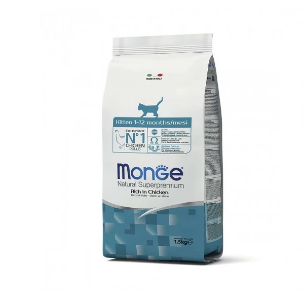 Monge Superpremium Kitten è un alimento secco completo per gattini fino a 12 mesi di età. Il suo complesso nutrizionale è ricco di elementi naturali che favoriscono la crescita del cucciolo in modo sano ed equilibrato.