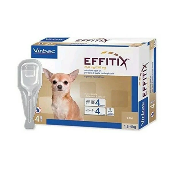 Effitix Spot-On Cani è un antiparassitario per cani da utilizzare contro le infestazioni da pulci e/o zecche, quando è anche necessaria un’attività repellente (anti-puntura) contro i flebotomi e/o zanzare.