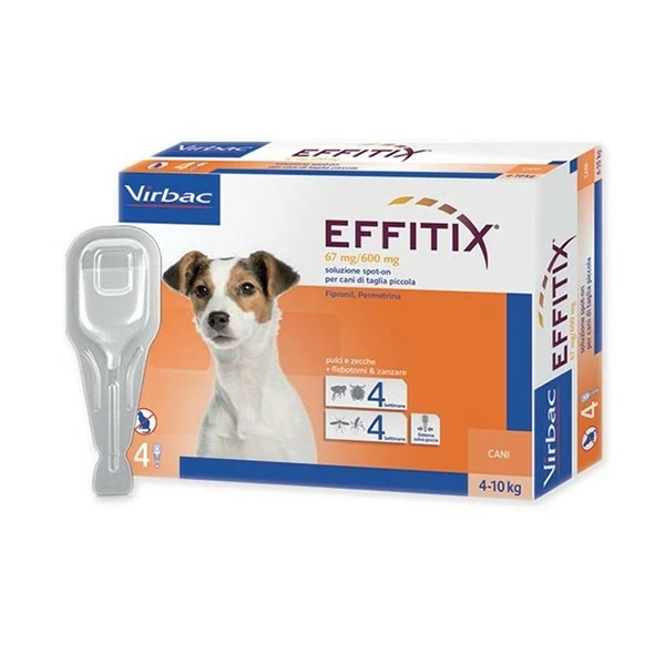 Effitix Spot-On Cani è un antiparassitario per cani da utilizzare contro le infestazioni da pulci e/o zecche, quando è anche necessaria un’attività repellente (anti-puntura) contro i flebotomi e/o zanzare.